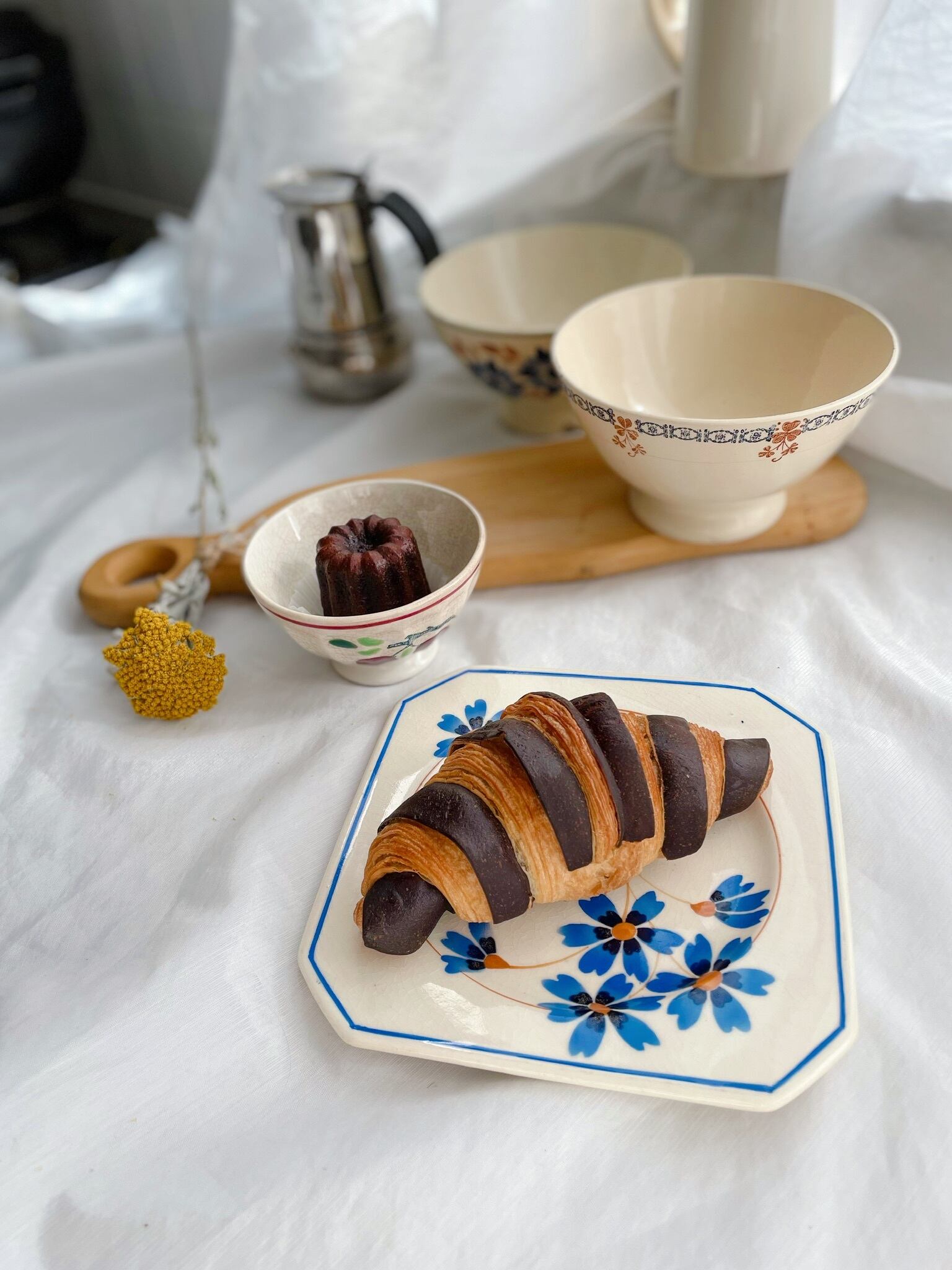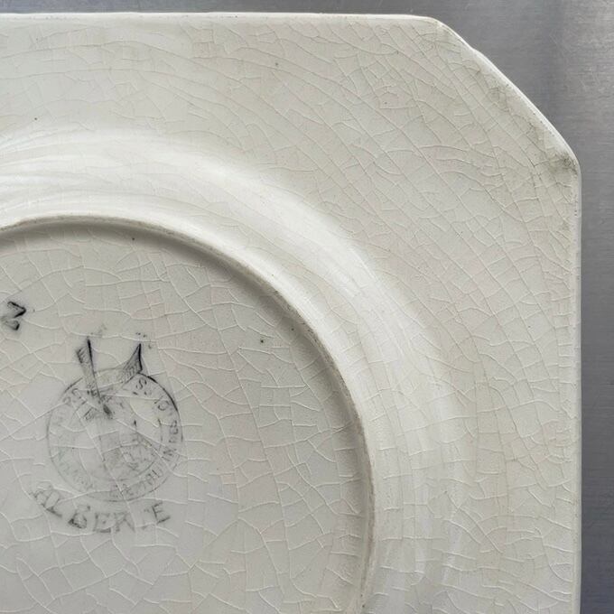 フランスMoulin des Loupヴィンテージプレート・スクエア青花&オレンジ色ステンシル
