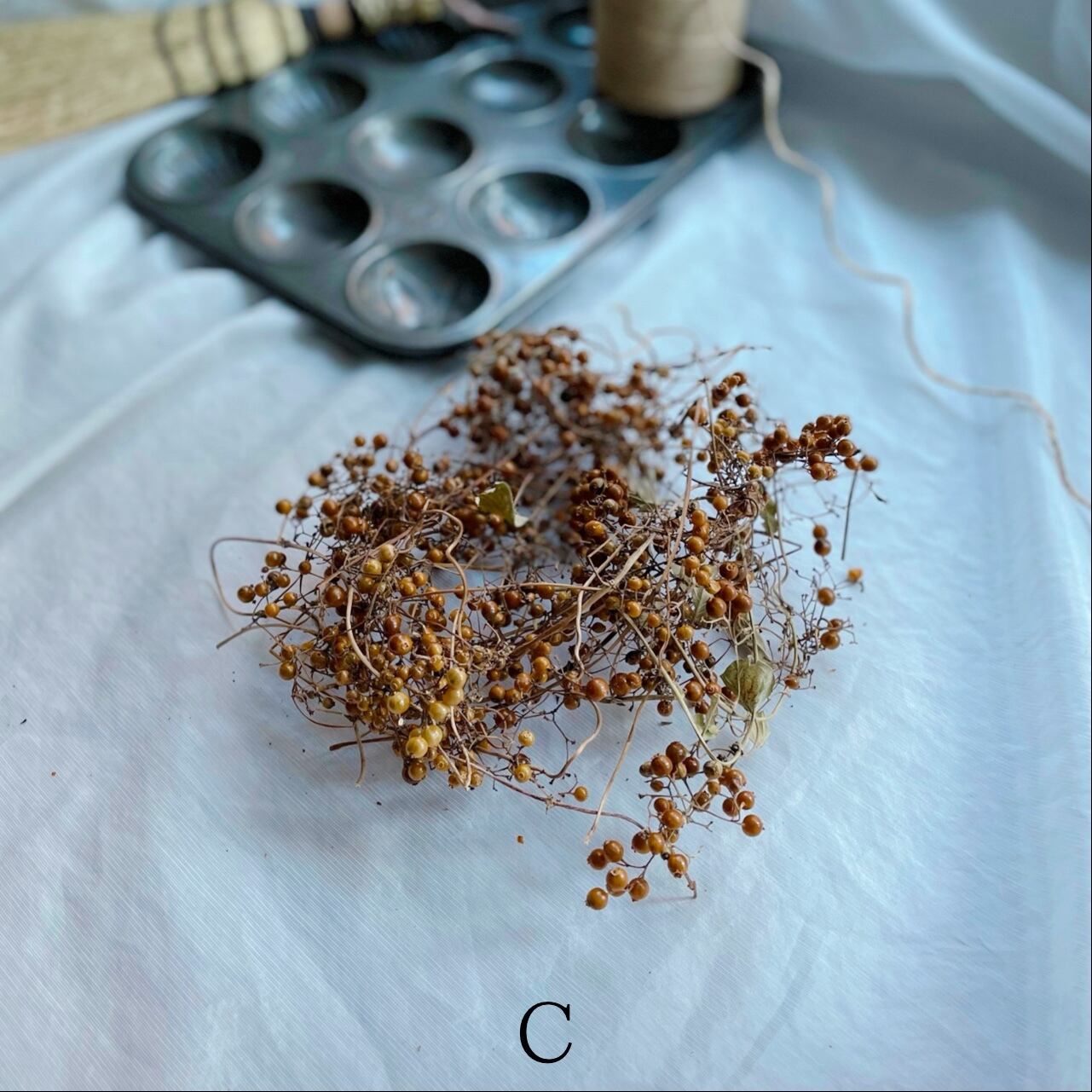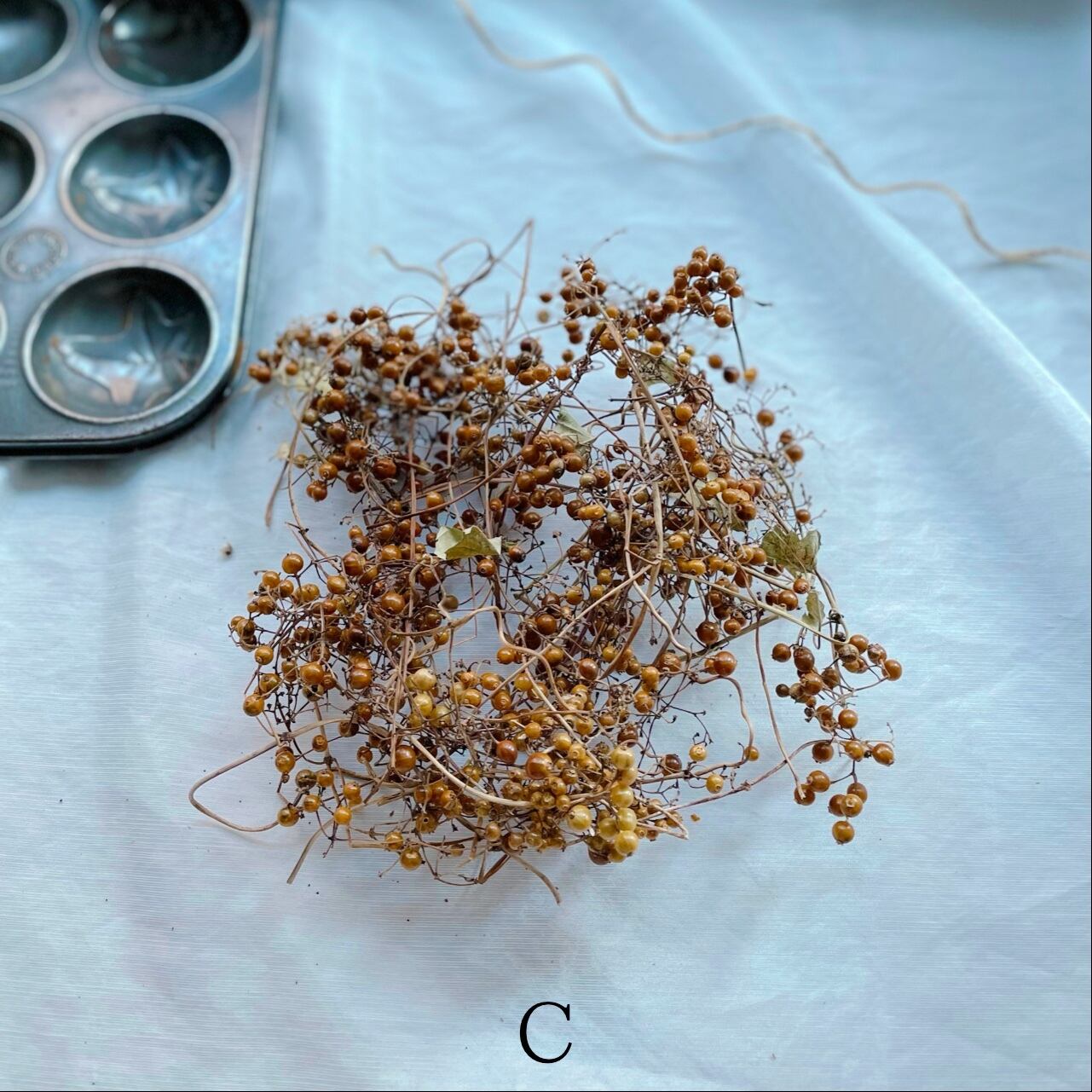 販売終了。信州ドライフラワーカズラの実(Parisワイヤー、麻ひも、リボン付き)A•B•C