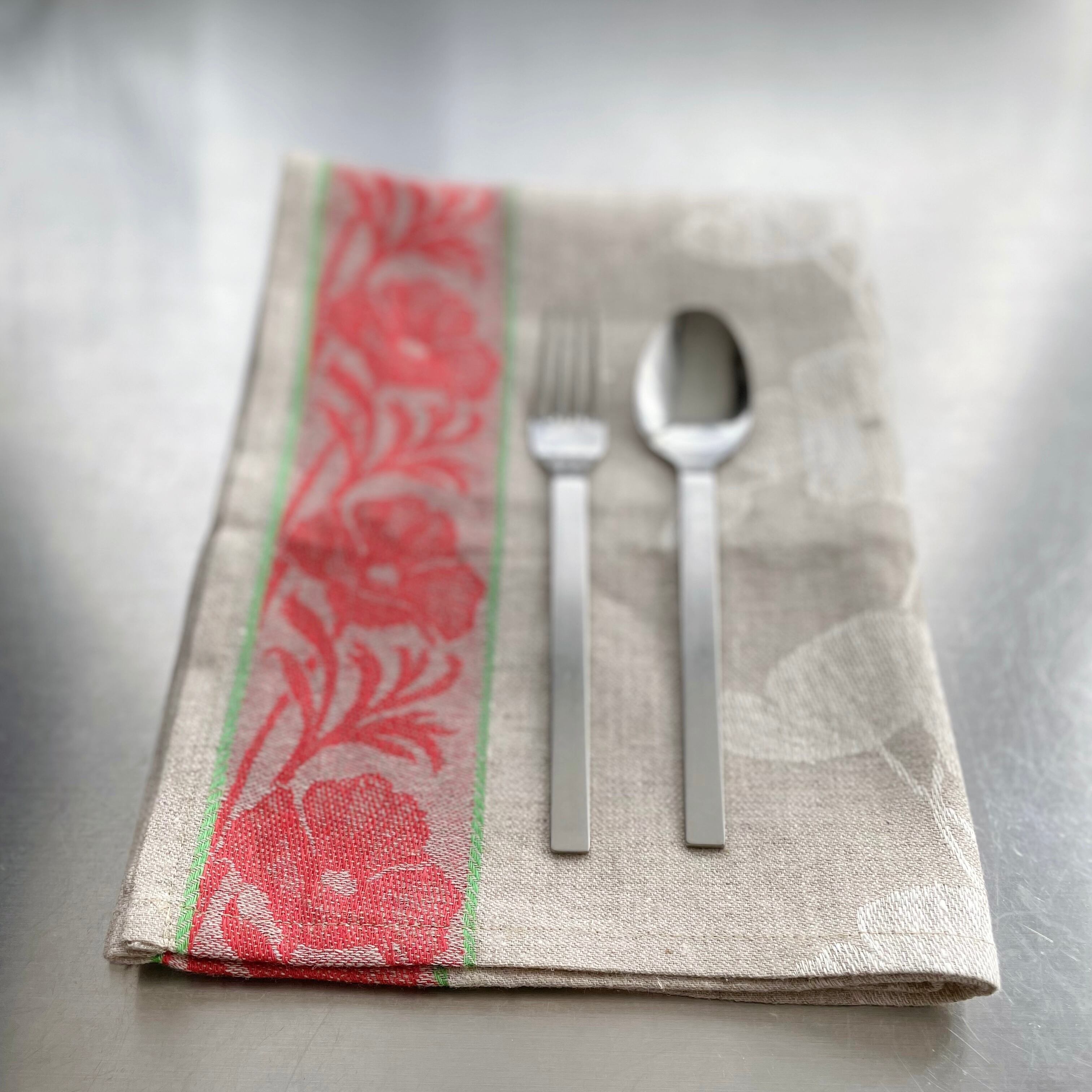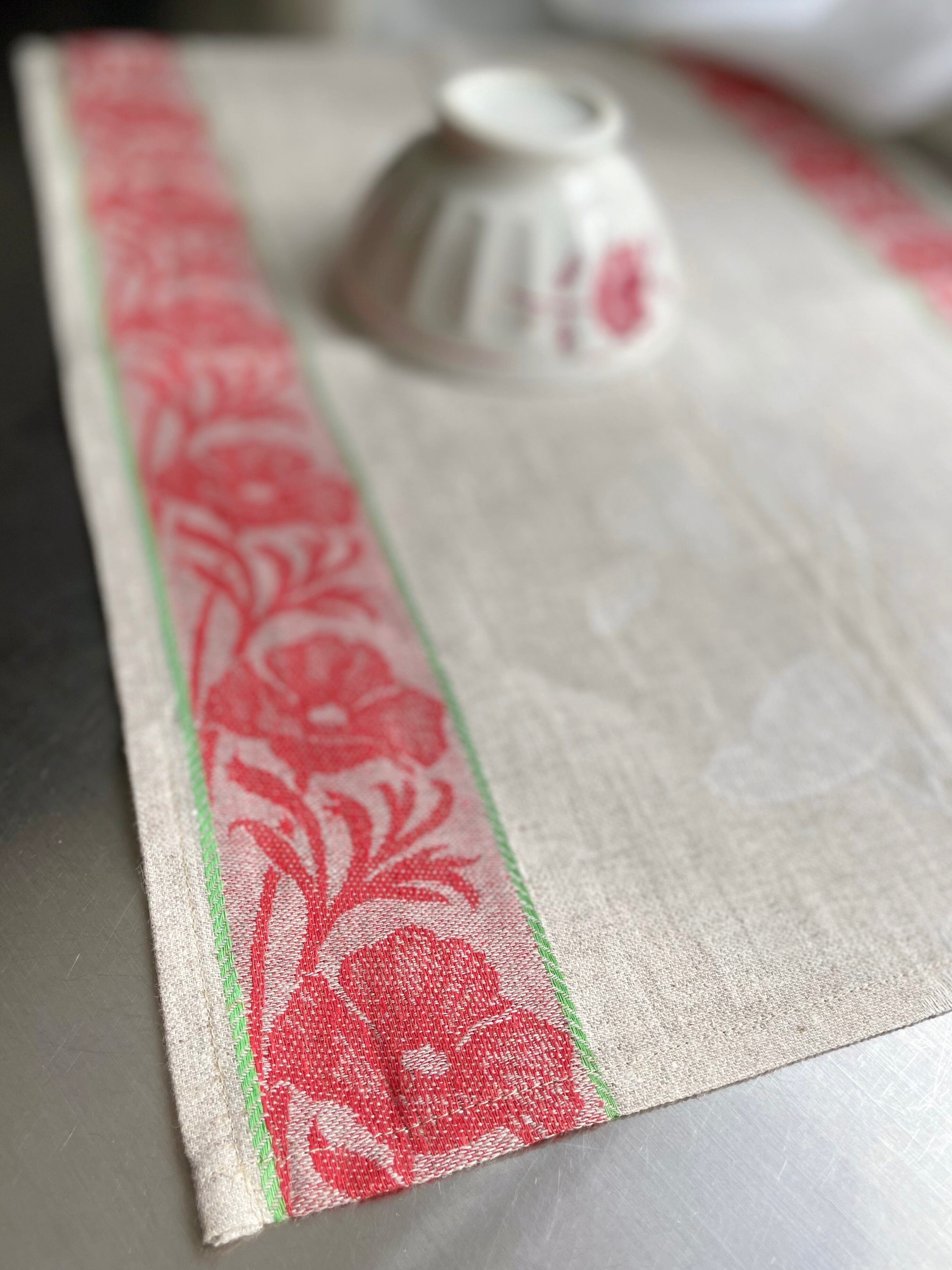 エストニア麻100%キッチンリネン花模様