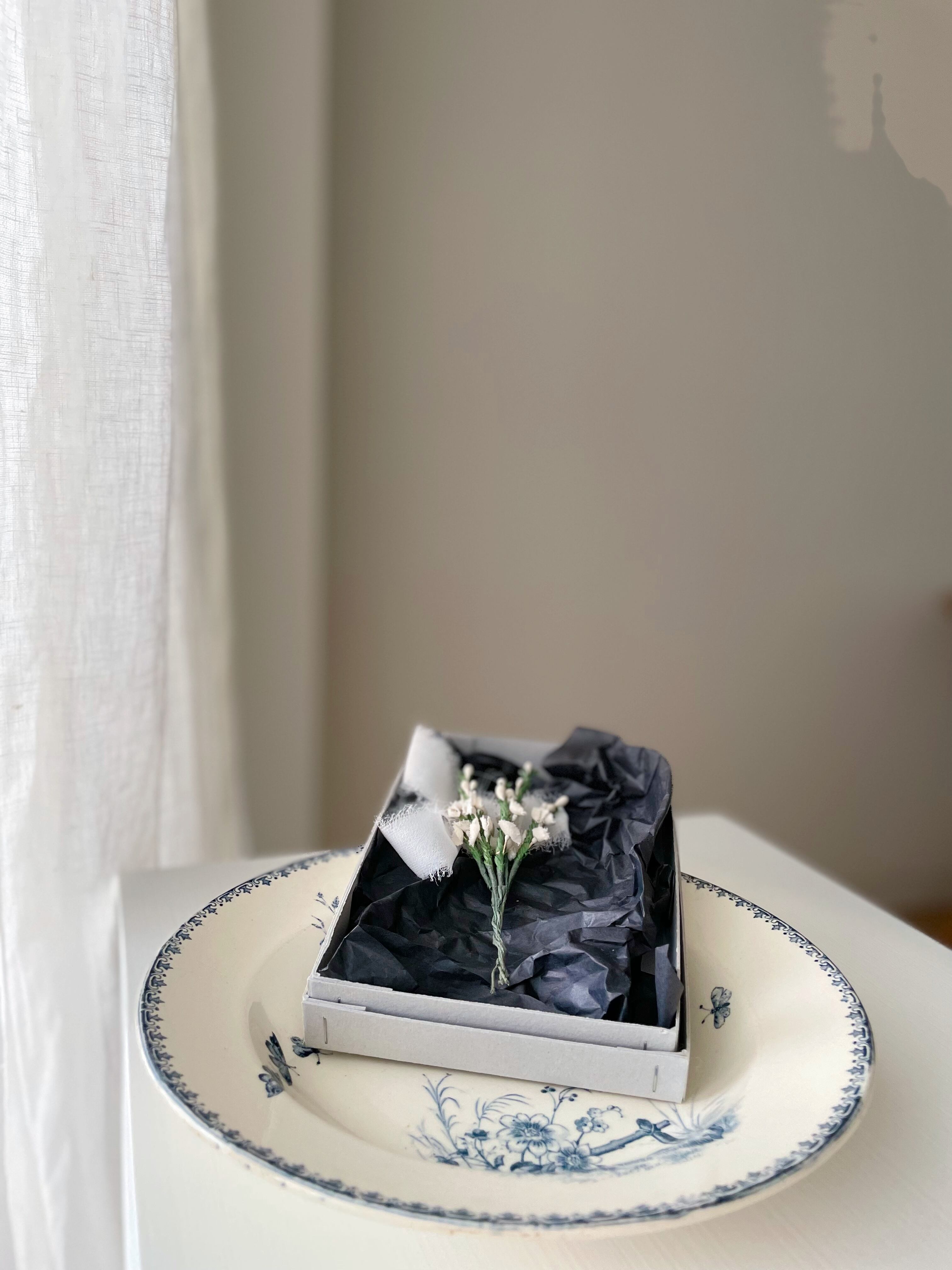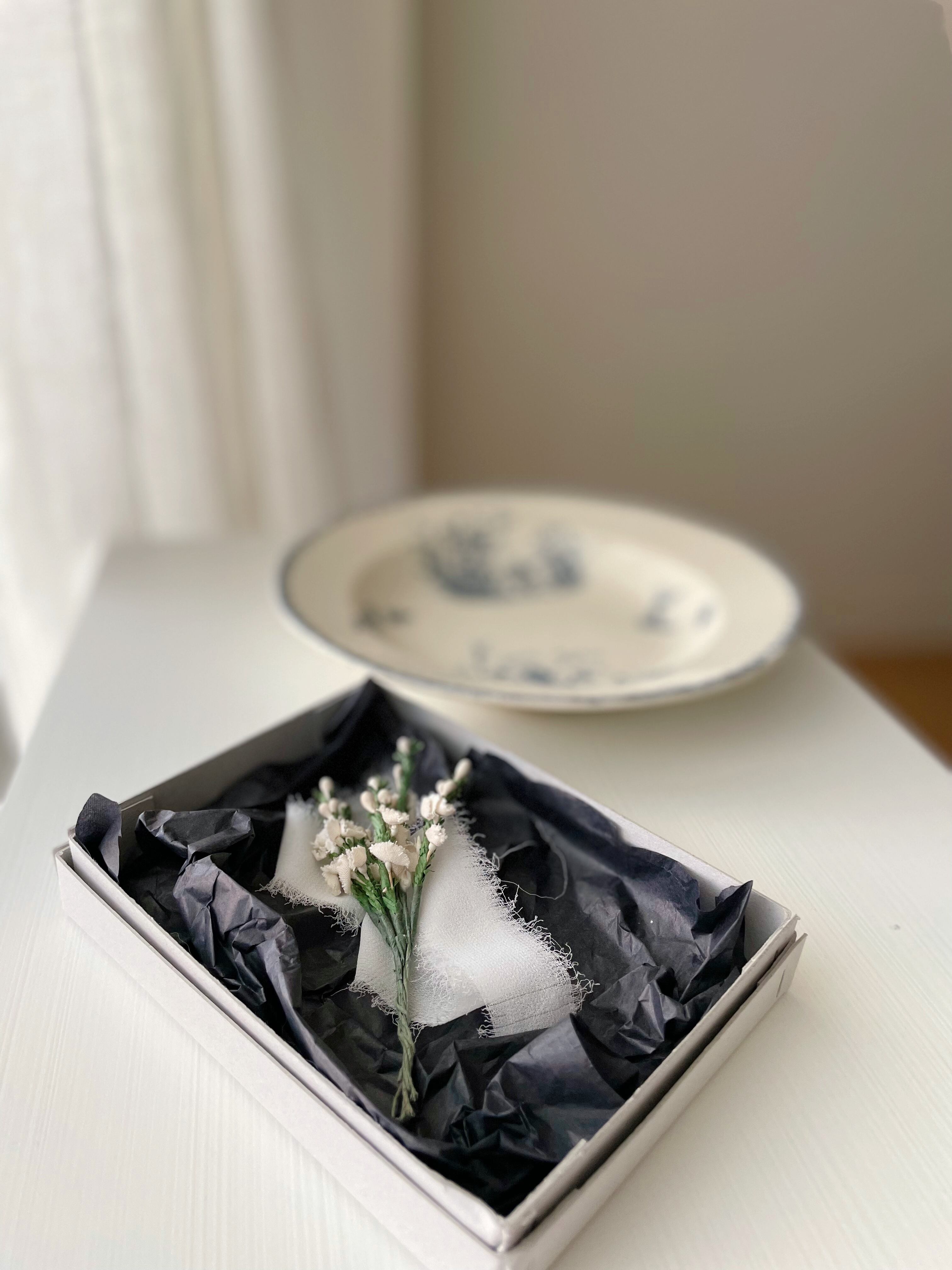【フランス布花すずらんA・花くすみ白×茎緑】