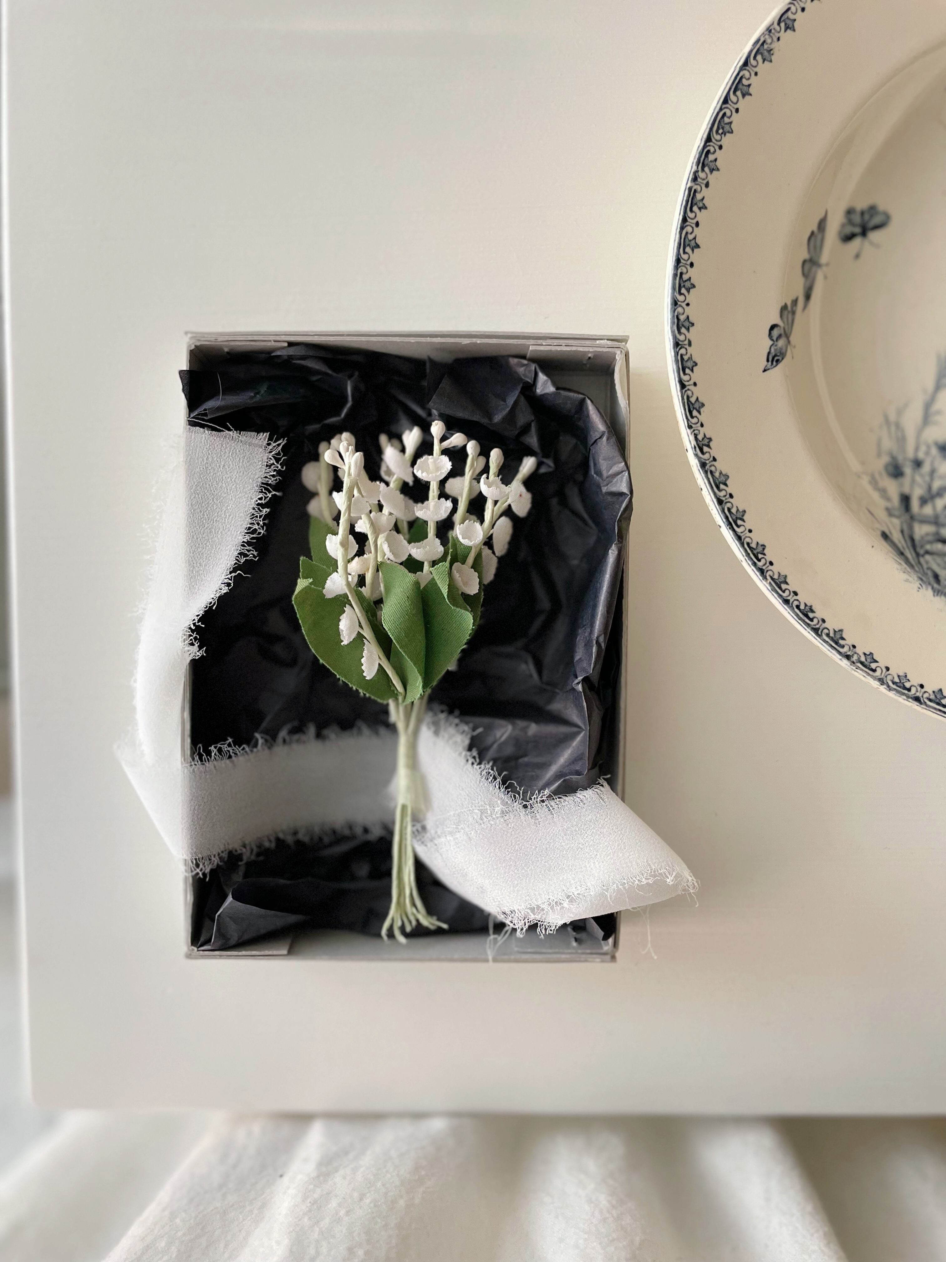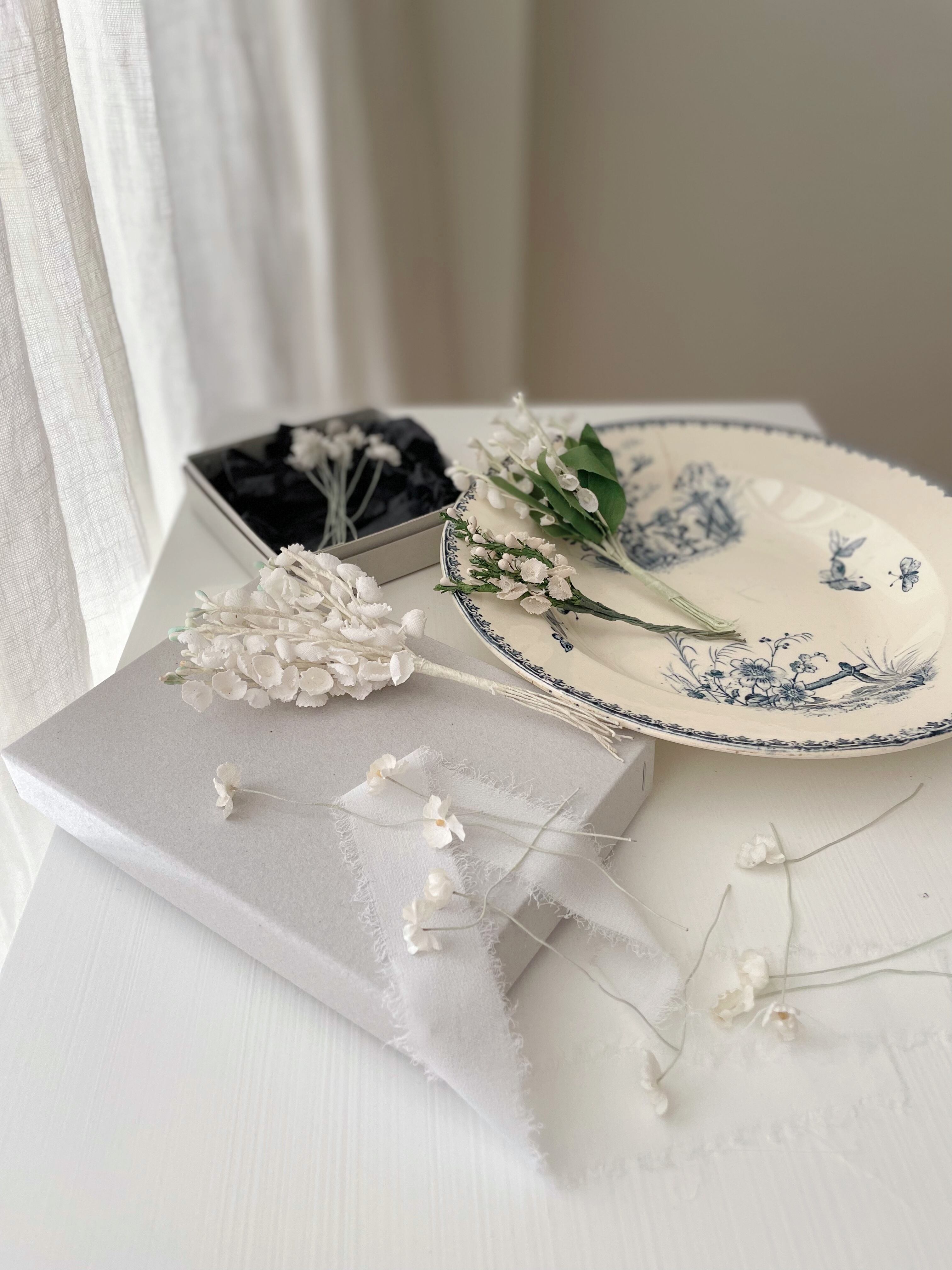 【フランス布花すずらんB・白花×葉付き】