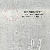 経年により、粒状の変色、小さな毛玉のような繊維が見えますが、大きなシミやほつれが少ない状態です。