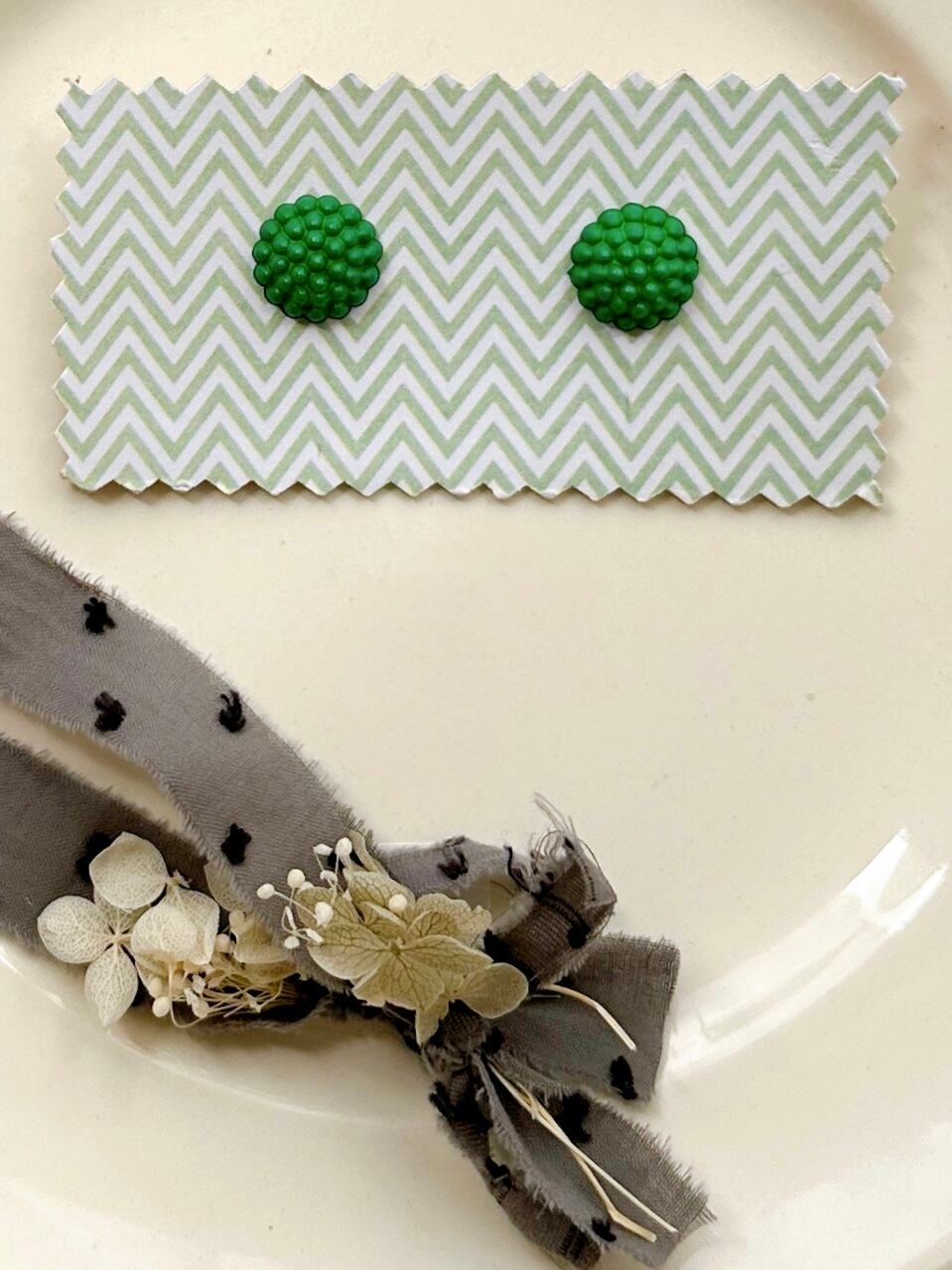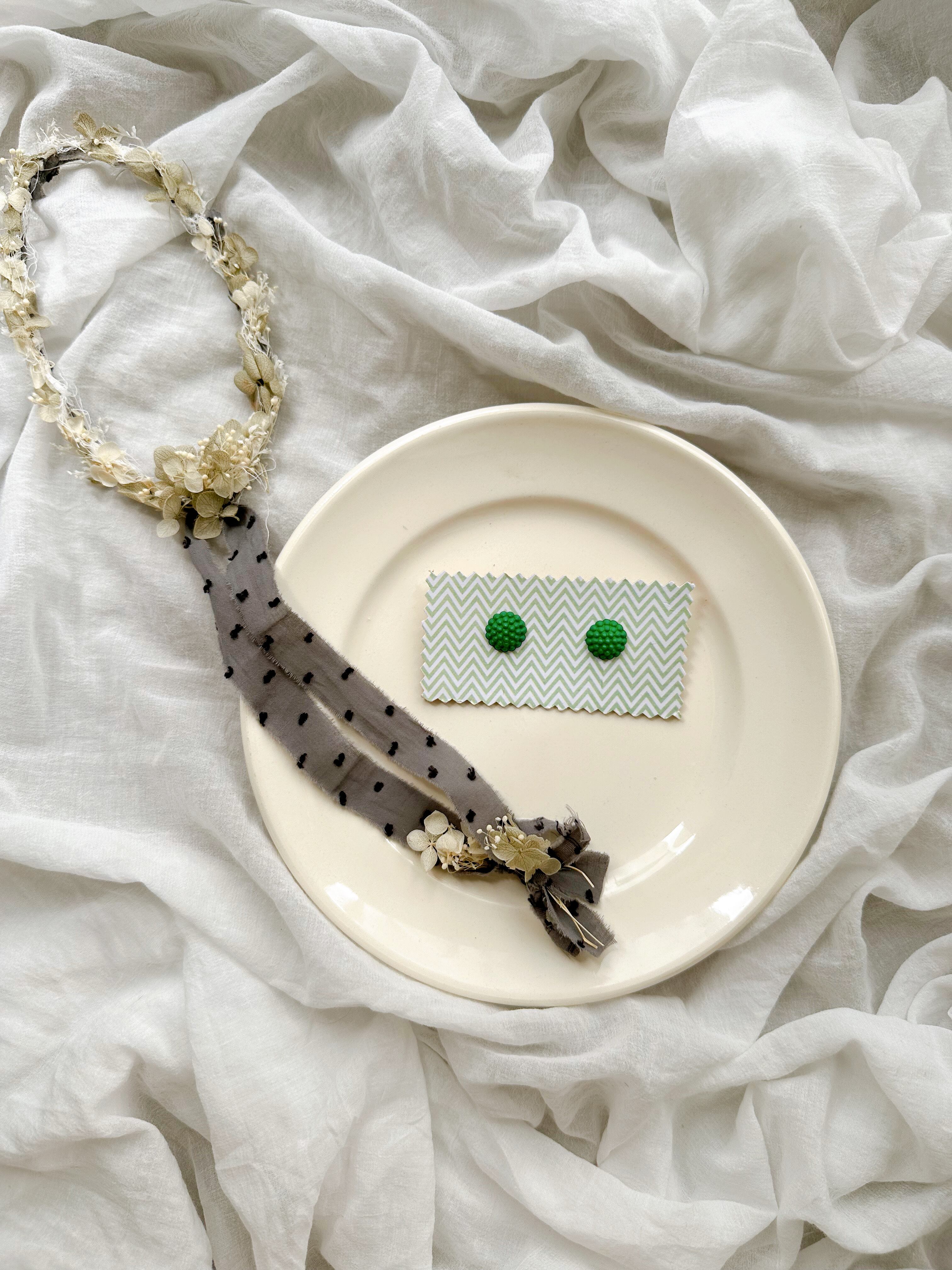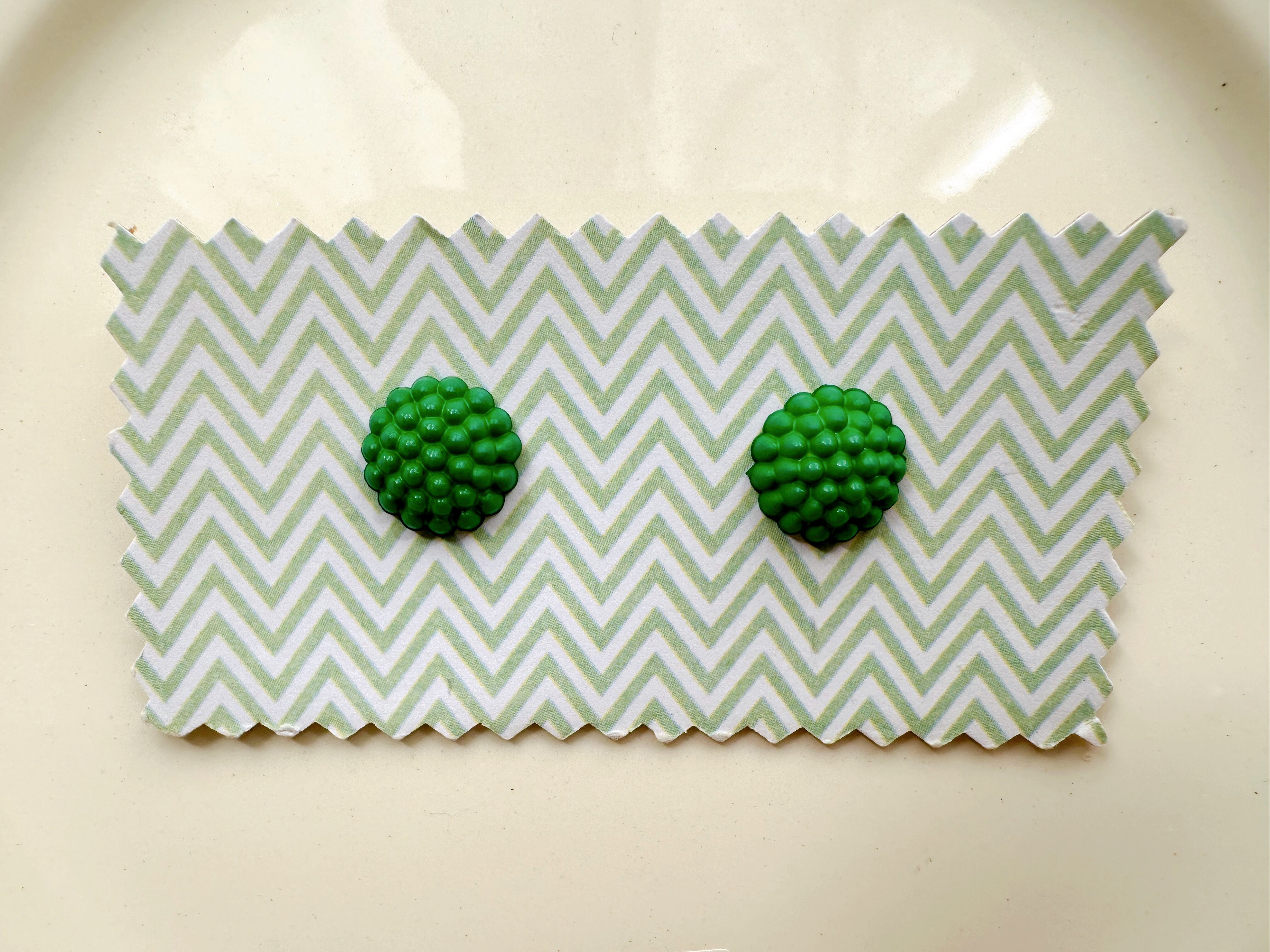 Franceデットストックボタン2個台紙付き_つぶつぶグリーン